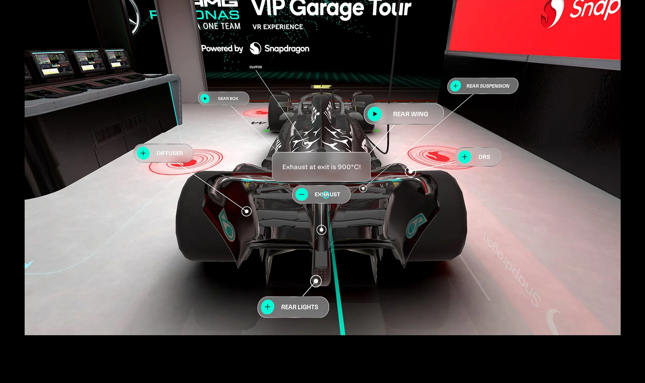 Made in collaboration with Qualcomm Snapdragon and the Mercedes-AMG PETRONAS Formula One Team, this exclusive virtual reality experience gives VIPs an opportunity to explore the Mercedes-AMG PETRONAS F1 virtual garage for an immersive behind-the-scenes look at team operations and showcasing the “All-in Performance” passion and expertise of the Mercedes-AMG PETRONAS F1 team.
