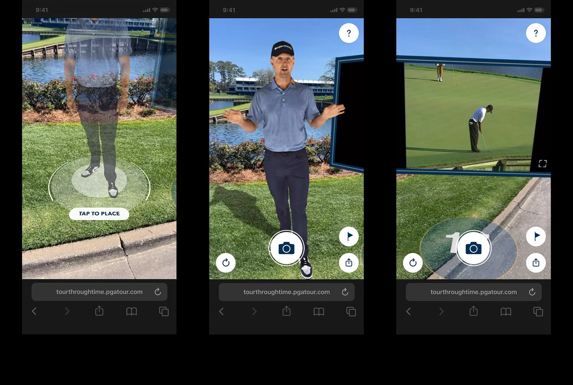 Built in collaboration with Morgan Stanley and PGA TOUR to celebrate the 50th anniversary of THE PLAYERS Championship, the 'Tour Through Time’ WebAR experience allowed fans to experience nine legendary moments from the championship, either on-site at the event or at home. The experience is hosted by a volumetric capture of Morgan Stanley ambassador and PGA TOUR professional Justin Rose, who provides exclusive narration and stories for each moment. Event attendees were guided to scan QR codes on signage placed around the course to unlock and view the historic highlights. Users who unlocked 6 of the 9 historic moments could visit the Morgan Stanley Fan Experience Tent for an exclusive 50th anniversary prize.