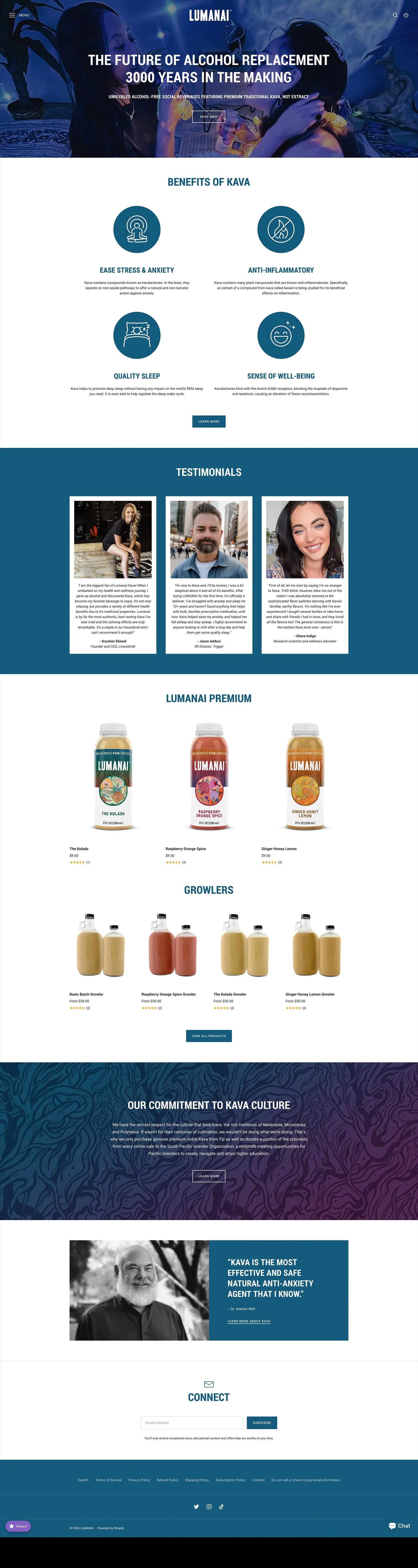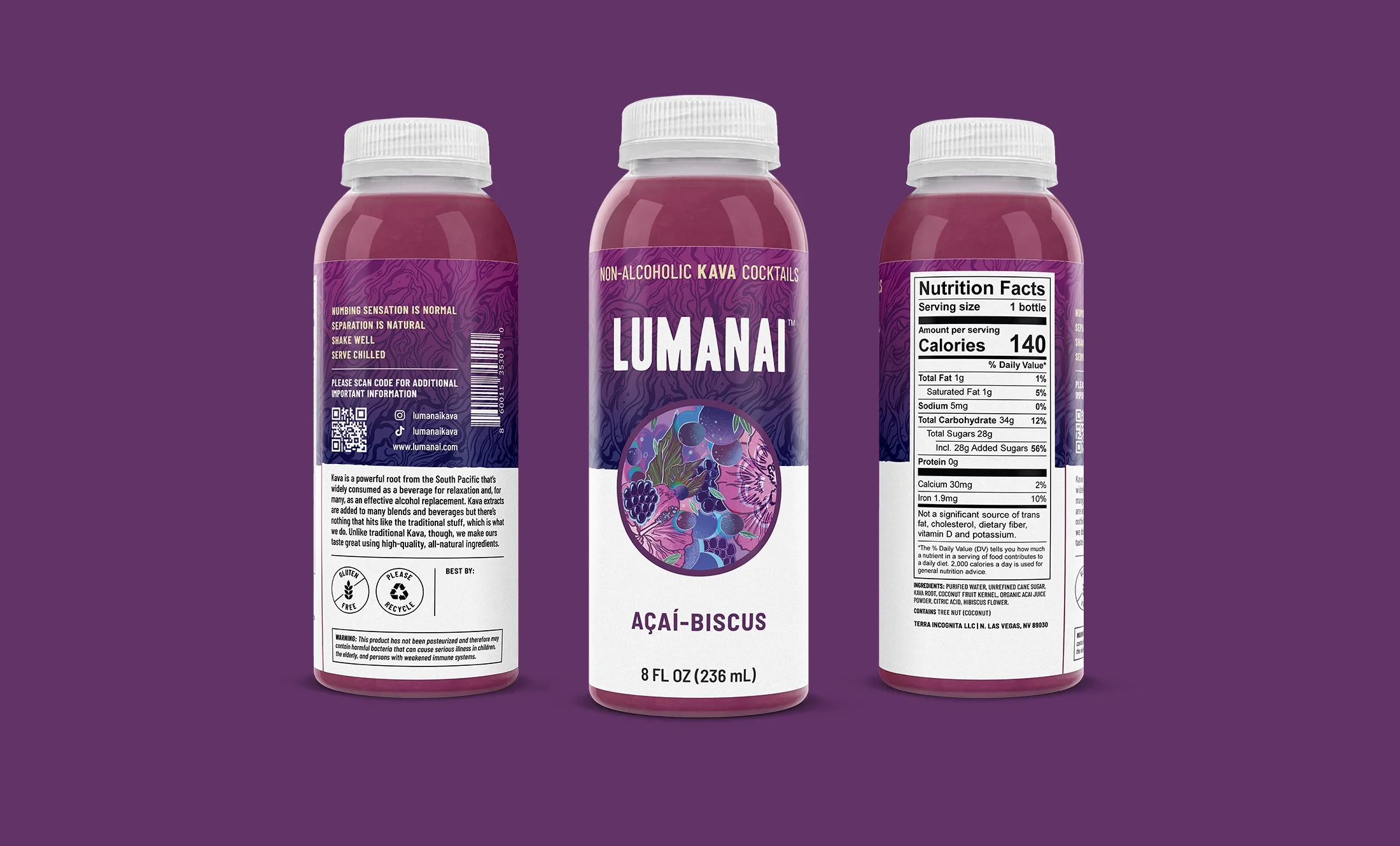 LUMANAI is a small but growing kava-based beverage company on a mission to make kava a mainstream social beverage and highlight its many benefits. Collaborating closely with the Founder and CEO, I helped shape the brand's identity to resonate with a younger demographic seeking alternatives to alcohol. My contributions included developing a modern visual identity, bottle packaging, print collateral, website, and social graphics. This cohesive approach positioned LUMANAI as an innovative and approachable brand in the expanding functional beverage market.