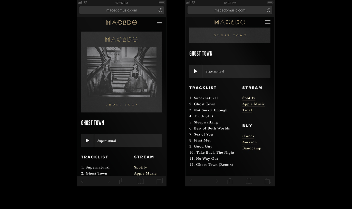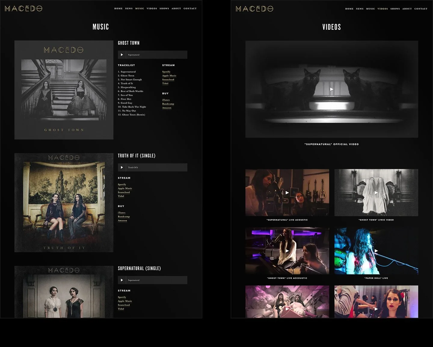 When twin indie singer-songwriter duo Macedo prepared to release their album Ghost Town, they sought a visual identity that would reflect the album’s dark, emotionally compelling, and richly textured sound, infused with empowering messages. I worked closely with the band to create a new logo, website, various single cover art, album cover art, and social media graphics. The resulting artwork captured the haunting and evocative atmosphere of Ghost Town, delivering a cohesive and impactful visual experience that resonated with the album’s themes.