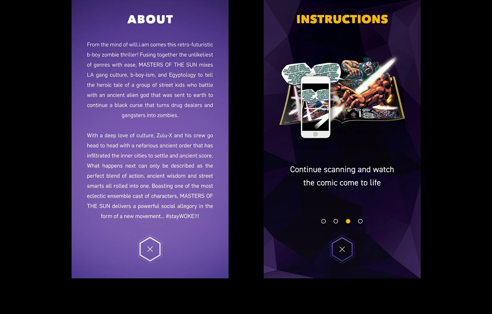 The app was built as a companion experience to the Black Eyed Peas’ graphic novel, ‘Masters of the Sun’. Each of the 100 pages are brought to life with augmented reality features, a cinematic score by Hans Zimmer and will.i.am, and an amazing voice cast featuring stars from both film and Hip Hop including Rakim, KRS-One, Queen Latifah, Common, Snoop Dogg, Rosario Dawson, Jamie Foxx, Stan Lee, and many more.