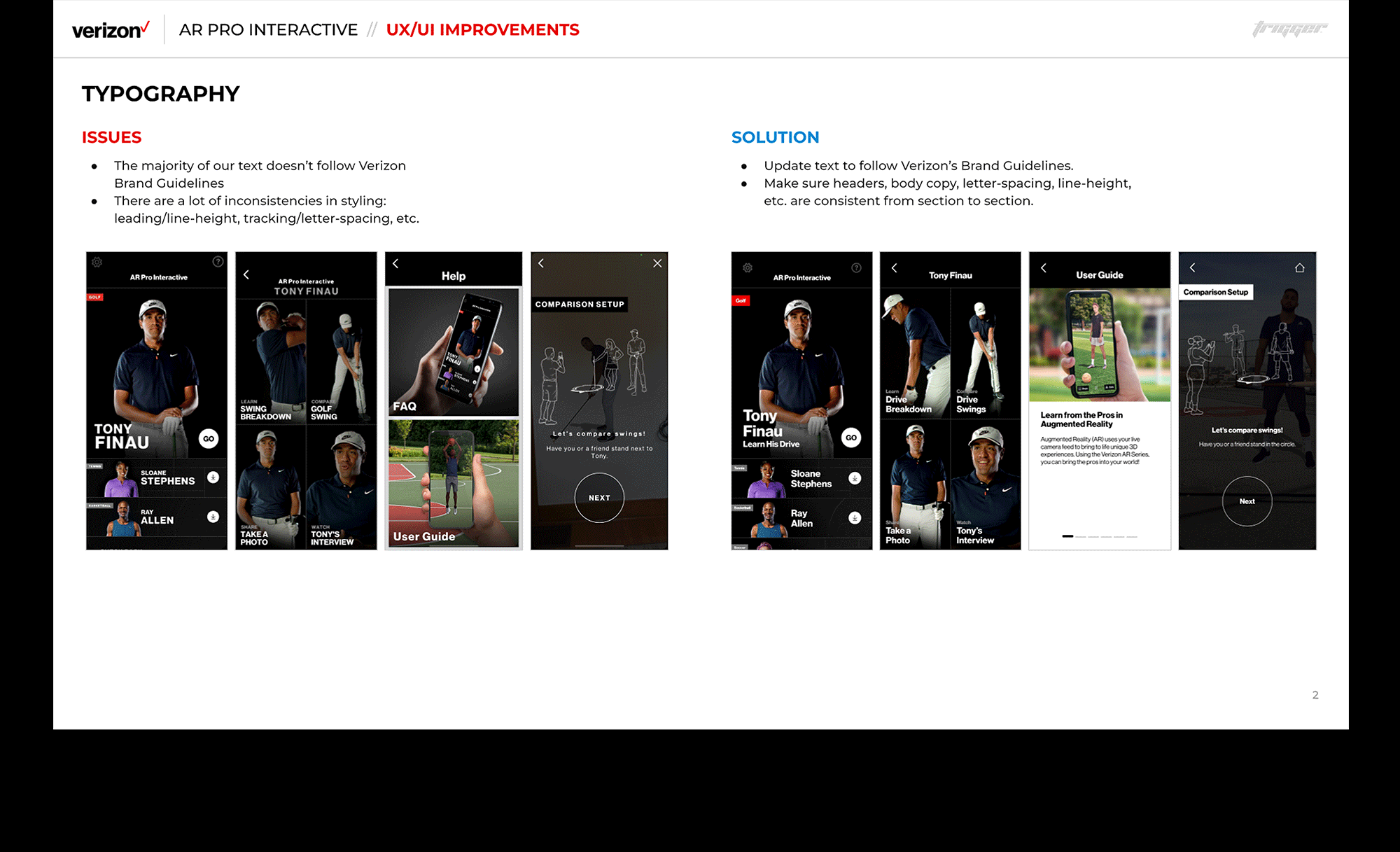 Initially built as a proof-of-concept (POC), the app required design refinements and UI updates to better adhere to Verizon's brand guidelines before it was launched for public use. User testing and client feedback also highlighted areas of the user experience that needed improvement.